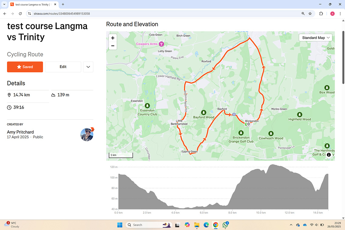 I recently started riding a new Langma Advanced Pro 0, replacing my old rim brake Liv EnviLiv. The guys at the store insisted that I was booked in for a pro-bike fit, with my old Tri London teammate and bike fitter Farouk. Even though my physical flexibility means I am quite adaptable, the benefits of bike fits on road and TT bikes have been proven to me over the years, so I was all in! Farouk swapped out the standard-length stem for a longer 130mm version (similar to my old Envi) and removed some of the head spacers to lower the front end. I am fortunate to be able to comfortably hold a forward flat position on my road bike. Following my fit, I couldn’t wait to test the new Langma on the cobbled climbs of the upcoming Tour of Flanders sportive in early April. The superlight Langma whizzed up the cobbles, and I started to wonder whether it'd give the Trinity TT a run for its money on a hilly course. I have a hilly bike course coming up in my next race in Pontevedra; ITU Age Group World Champs Long Course Aquabike. I decided to test the two bikes against each other on a known 10-mile course in Brickendon, because I wanted to know that I was taking the right bike for the conditions. Several years prior, I had tested my Avow (TT) against the Envi (Aero Road) on a series of hill repeats, and the Avow came out on top, but this climbing Langma warranted a further look.